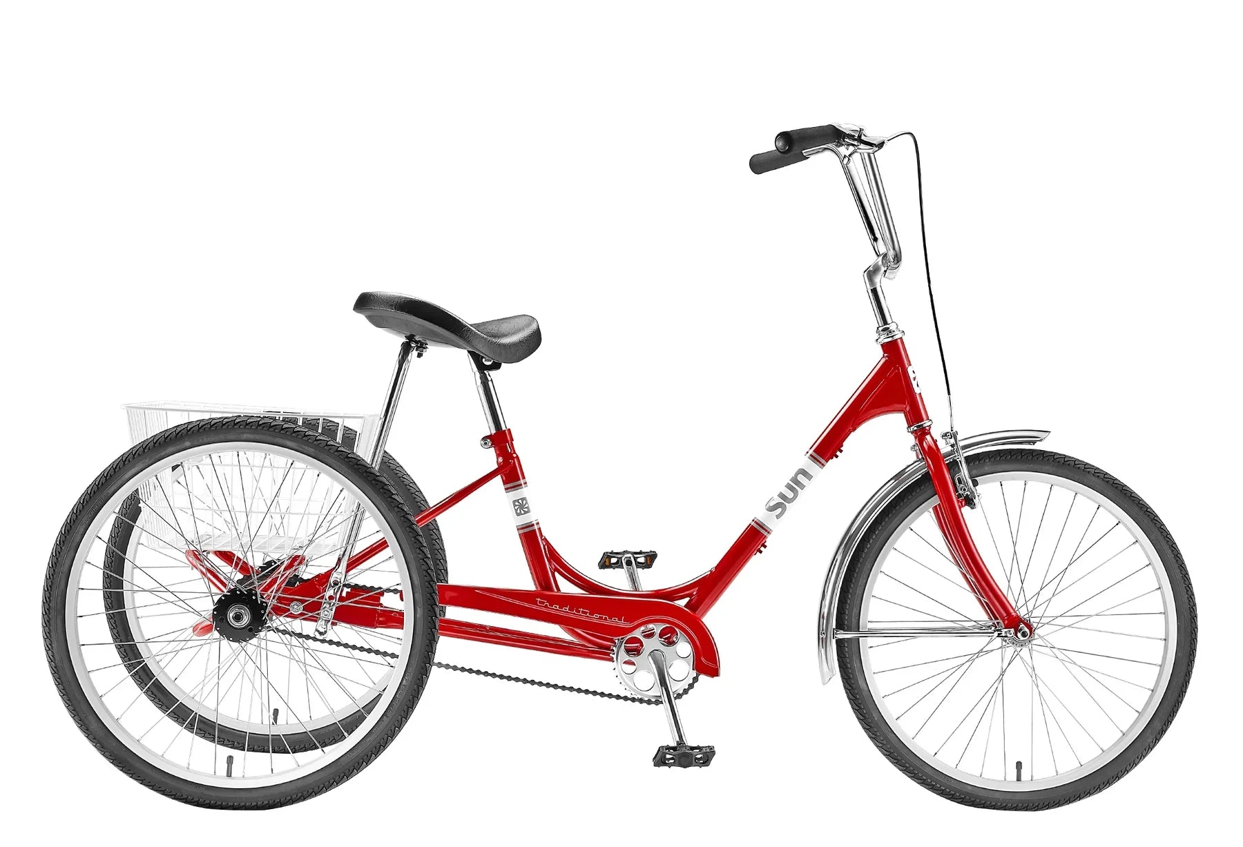 The Traditional trike, a classic in its field, is purpose built with comfort, stability, durability, and practicality in mind. A super low step-through frame, upright riding position, Sun custom tractor saddle, and rear basket are just a few features that make our trike an ideal choice for trips to the market, getting a little exercise or just getting around. The Traditional trike accepts a wide range of available accessories and gearing options to suit your exact needs and riding style.